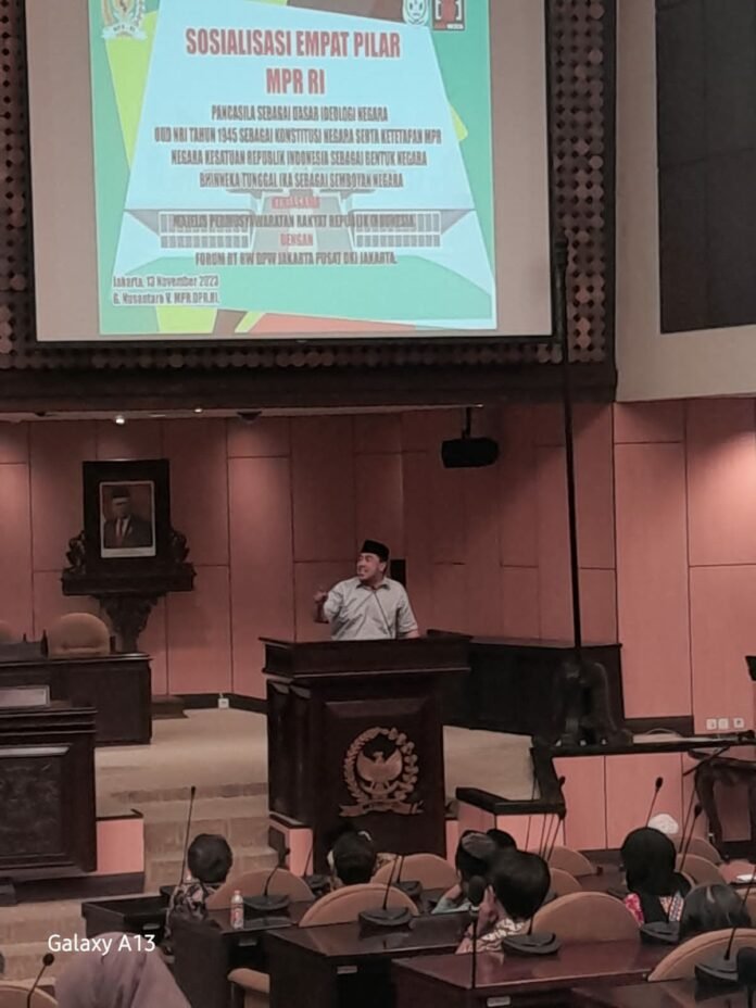 ACTUALNEWS.id Jakarta -, MPR RI menggelar sosialisasi Empat Pilar MPR RI bersama Forum RT RW DPW Jakarta Pusat di Nusantara V.MPR.DPR.RI Jakarta, Senin (13/11/2023).