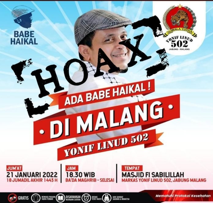 ACTUALNEWS.ID, Malang – Terkait adanya rencana ceramah yang akan digelar oleh Ustadz Haikal Hasan di Malang, sebelumnya beredar banner di media sosial yang bertuliskan bahwa ceramah Haikal Hasan akan digelar di Markas Yonif Linud 502 Malang.