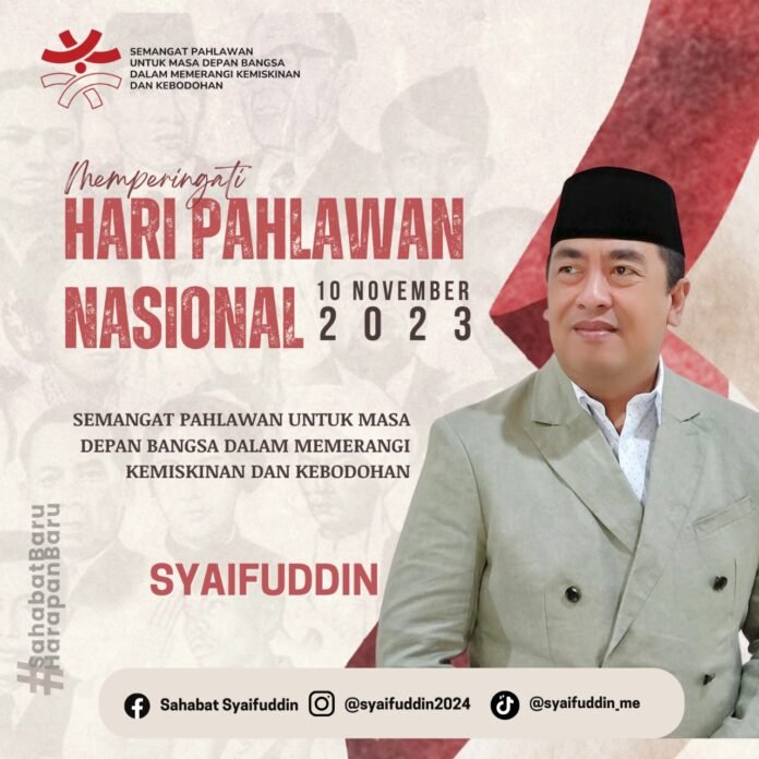 Hari Pahlawan 2023 mengusung tema “Semangat Pahlawan untuk Masa Depan Bangsa dalam Memerangi Kemiskinan dan Kebodohan” diharapkan dapat terus memberikan energi tambahan untuk menggugah kesadaran segenap elemen bangsa untuk terus bersatu dan membantu sesama tanpa memandang sekat dan kesejahteraan untuk Indonesia maju.