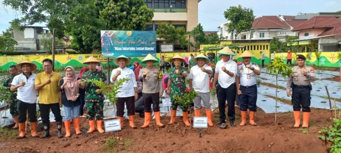 ACTUALNEWS.ID, Kodam Jaya, Jakarta Barat – Mengusung tema, “Hijau Jakartaku, Lestari Alamku”, Aksi Penanaman Pohon Secara Serentak oleh KASAD Jenderal TNI Maruli Simanjuntak, M.Si., secara Daring dan Vicon bersama Pangdam Jaya/Jayakarta, Mayjen TNI Mohamad Hasan, PJ Gubernur Heru Budi Hartono dan Kapolda Metro Jaya yang diikuti oleh Komandan Kodim 0503/Jakarta Barat, Letkol Inf ES. Putra Siregar, S.I.P., Walikota Kota Adm. Jakarta Barat H. Uus Kuswanto, S.Sos., M.A.P., dan Forkopimko Jakarta Barat, bertempat di Lahan Kantor Kelurahan Pegadungan, Jl. Palm Raja Timur Blok D. 11 Komplek Perum Citra 3 Kelurahan Pegadungan, Kecamatan Kalideres, Jakarta Barat, Jumat (05/01/2024).