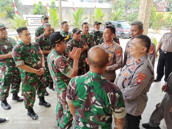 Kedatangan rombongan Koramil 02/Pjr Kodim 0502/JU diterima langsung Wakapolsek Sunda Kelapa AKP Ikrom Baihaki bersama anggotanya.