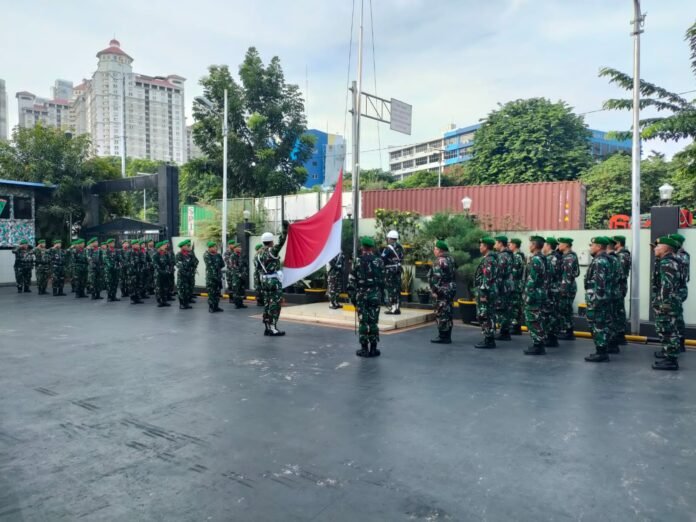 Jakarta -Kodim 0503/JB menggelar upacara bendera 17 an bertempat di Lapangan Upacara Makodim 0503/JB,Jln S.Parman III Kelurahan Tomang Kecamatan Gropet Jakarta Barat.Rabu (17/1/2024)