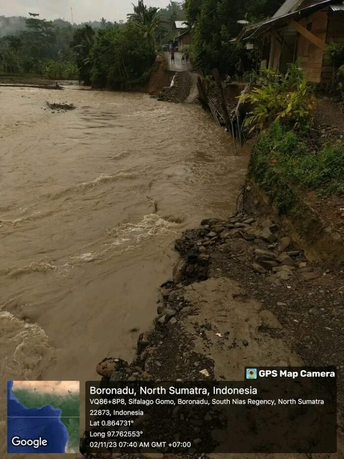 ACTUALNEWS id Jakarta — Pada hari Minggu (15/10/2023) jalan penghubung Kecamatan Gomo menuju Kecamatan Boronadu putus total yang diakibatkan oleh terjangan banjir sehingga tidak bisa dilalui oleh kendaraan roda dua dan roda empat sehingga mobilitas masyarakat terisolir.