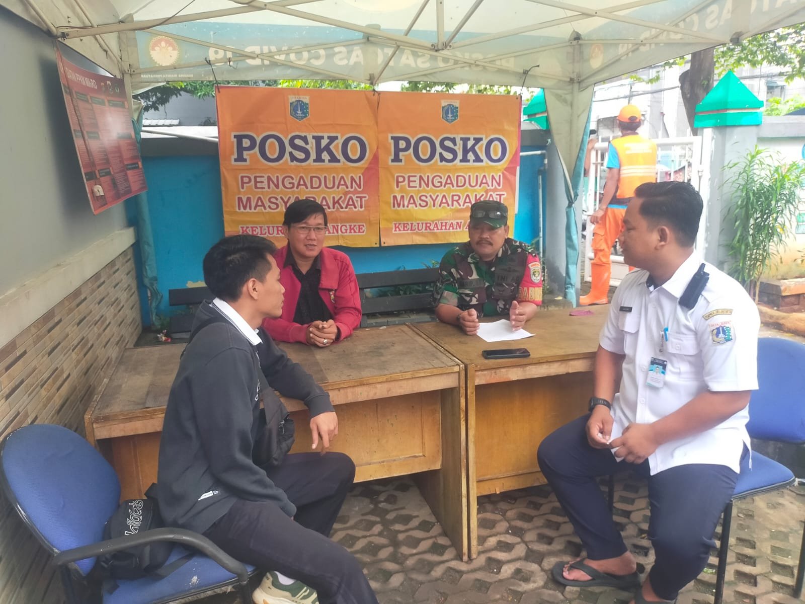 Komsos yang dilaksanakan Serda Sarip St bertempat di Jl. Angke Indah, Posko Pengaduan Masyarakat.