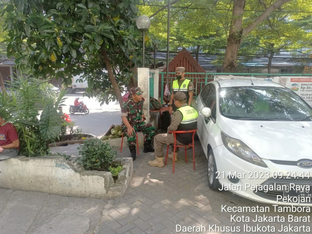 Komsos Sertu Edi S Saragih dalam rangka berkoordinasi dengan anggota Satpol PP Kel Pekojan serta berbagi Informasi dalam rangka menghadapi bulan suci Ramadhan.