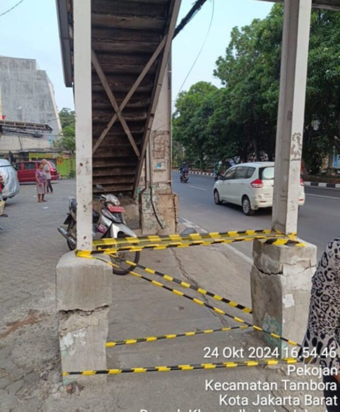 ACTUALNEWS.ID, Jakarta – Jembatan Penyebrangan Orang (JPO) yang terletak di Bandengan Utara, Pekojan, Kecamatan Tambora Jakarta Barat semetara di tutup.