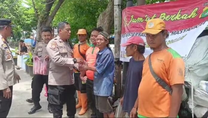 Dipimpin Wakapolsek Pademangan AKP Damun, SH, MH, rombongan polisi ini melaksanakan program rutin bertajuk Jumat Berkah. Sebanyak 20 nasi bungkus dibagikan kepada warga sekitar Jl. Pademangan III, RT 01 RW 10, sebagai bentuk kepedulian sosial sekaligus upaya mendekatkan Polri dengan masyarakat.