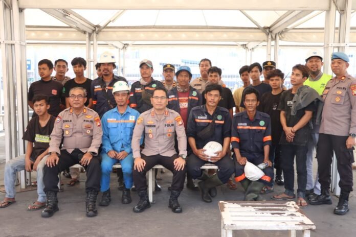 Kapolres juga mengingatkan pentingnya memperhatikan peraturan dalam bekerja, termasuk penggunaan baju safety dan APD. “Saya berharap kita semua saling menghargai semua aturan yang ada di sini. Turut membantu dan menjaga tata tertib dan keamanan lingkungan tempat kalian bekerja,” tambahnya.