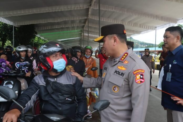 Didampingi Kapolda Lampung Irjen Pol Helmy Santika dan perwakilan instansi terkait, ia juga membagikan makanan ringan kepada para pemudik sebagai bentuk perhatian Polri terhadap mereka yang melakukan perjalanan jauh.