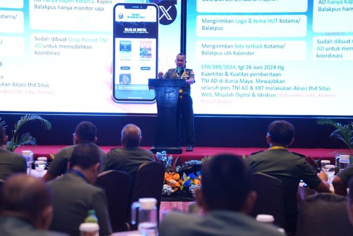 Hal ini disampaikan Kadispenad saat memberikan arahan kepada para Kepala Penerangan (Kapen) Kotama dan Balakpus TNI AD, dalam Rapat Evaluasi Fungsi Penerangan TNI AD yang berlangsung di Ballroom Hotel Novotel, Gunung Sahari, Jakarta Pusat, Kamis (12/12/2024).