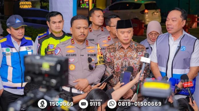 ACTUALNEWS.ID, KORLANTAS POLRI, Semarang. Kakorlantas Polri Irjen Pol Drs. Agus Suryonugroho S.H, M.Hum mendampingi Menteri Perhubungan (Menhub) Dudy Purwagandhi memantau pergerakan arus balik di GT Banyumanik Semarang, Jawa Tengah, Sabtu (5/4/2025).