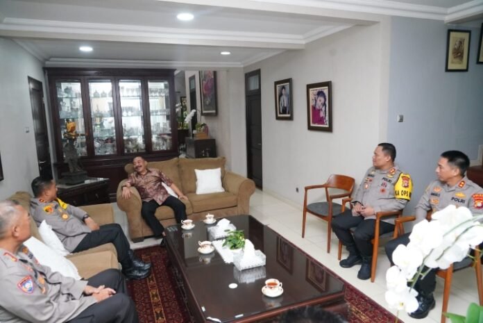 ACTUALNEWS.ID, Tangerang Selatan – Kepala Kepolisian Daerah Metro Jaya Irjen Pol Karyoto silaturahmi dengan Jenderal Polisi (Purnawirawan) Drs. Timur Pradopo, Jumat (03/5/24). Didampingi Koor Spri AKBP Anggi Saputra Ibrahim, S.H., S.I.K., M.H. serta dua orang pejabat utama Polda Metro Jaya yakni Karo SDM Polda Metro Jaya Kombes Pol Langgeng Purnomo, S.I.K., M.H., Dir Binmas Polda Metro Jaya Kombes Pol Badya Wijaya S.,H., M.H. dan Kapolres Tangerang Selatan AKBP Ibnu Bagus Santoso SIK, M.M., M.H. kegiatan silaturahmi ini berlangsung di kediaman Jenderal Pol (Purn) Drs. Timur Pradopo di Jalan Kucica Kelurahan Pondok Pucung, Kecamatan Pondok Aren, Tangerang Selatan.