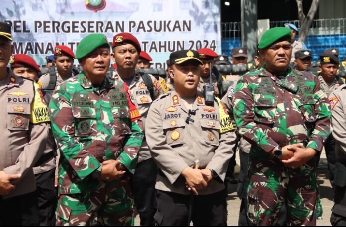 ACTUALNEWS.ID, Kapolres Kepulauan Seribu, AKBP Jarot Sungkowo, S.H., S.I.K., dan oleh Letkol Inf Budi Siswandi, S.E Pabung Kodim 0502 Jakarta Utara memimpin Apel Pergeseran Pasukan Pengamanan Tempat Pemungutan Suara (TPS) Polres Kepulauan Seribu yang digelar di Kantor Perwakilan Polres Kepulauan Seribu, Marina Ancol Jakarta, pada Selasa (13/02/2024). Acara tersebut turut dihadiri serta Mayor Czi. Hernowo Danramil Kepulauan Seribu, Wakapolres Kepulauan Seribu, Pejabat Utama Polres Kepulauan Seribu, anggota pengamanan TPS dan personel Koramil Kepulauan Seribu.