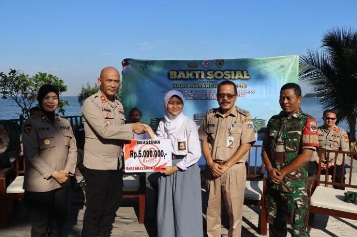 ACTUALNEWS.ID, Jakarta – Kapolres Kepulauan Seribu, AKBP Jarot Sungkowo, S.H., S.I.K., memimpin kegiatan bakti sosial Polres Kepulauan Seribu yang mencakup pemberian bibit pohon ketahanan pangan, penanaman pohon serentak, dan pemberian beasiswa. Kegiatan ini diselenggarakan dalam rangka memperingati HUT Bhayangkara ke-78.