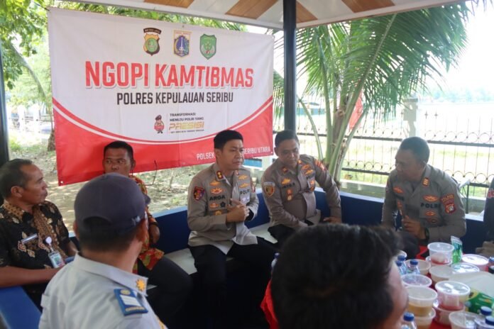 ACTUALNEWS.ID, Kepulauan Seribu – Kapolres Kepulauan Seribu, AKBP Argadija Putra, S.I.K., M.Si., menggelar kegiatan Ngopi Kamtibmas di Pulau Kelapa, Kecamatan Kepulauan Seribu Utara, Rabu (03/09/2025). Kegiatan ini dihadiri Pejabat Utama Polres, Kapolsek jajaran, unsur TNI, stakeholder terkait, tokoh agama, tokoh masyarakat, serta warga setempat.