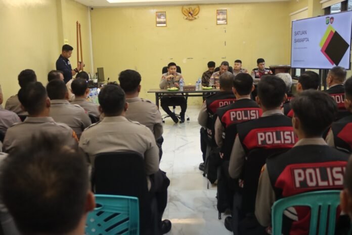 Selain itu, Kapolres berpesan agar setiap anggota berperilaku sopan santun, menjaga etika perkataan dan perbuatan, tidak arogan, saling menghormati, serta menjauhi tindakan tercela seperti pemerasan atau penyalahgunaan wewenang. “Tidak ada yang merasa paling hebat atau paling dibutuhkan, jika memiliki kelebihan agar ditularkan kepada rekan lainnya,” tegasnya.