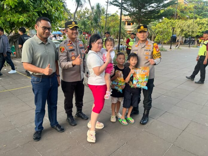 Setibanya di lokasi, Kapolres Metro Jakarta Utara beserta rombongan langsung melakukan patroli di area Taman Impian Jaya Ancol. Selain memastikan keamanan, Kapolres juga berinteraksi dengan pengunjung, khususnya anak-anak, dengan membagikan bingkisan jajanan. Dalam kesempatan tersebut, ia mengimbau para pengunjung untuk selalu menjaga barang bawaan dan memperhatikan keluarga, terutama anak-anak, agar tidak terpisah di tengah keramaian.