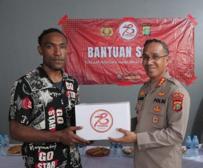 Kegiatan dengan memberikan bantuan sosial kepada Mahasiswa Papua dalam rangkaian HUT Bhayangkara ke-78 tahun 2024.