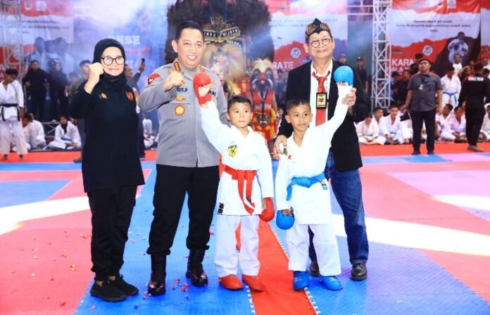 ACTUALNEWS ID, Bogor – Kapolri Jenderal Listyo Sigit Prabowo membuka perlombaan karate bertajuk ‘National Open Karate Championship’. Pembukaan digelar di GOR Laga Tangkas, Pakansari, Kabupaten Bogor, Jawa Barat, Jumat (26/7/2024), Jenderal Sigit tiba di lokasi sekitar pukul 14.10 WIB. Setiba di lokasi, dia langsung duduk di tempat yang telah disediakan.