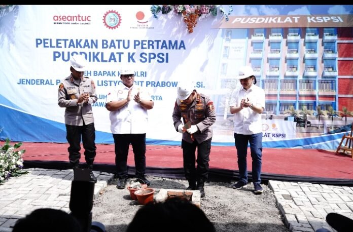 ACTUALNEWS.ID, Kapolri Jenderal Polisi Drs. Listyo Sigit Prabowo, M.Si melaksanakan kegiatan peletakan batu pertama pembangunan gedung Pusdiklat Konfederasi Serikat Pekerja Seluruh Asean Trade Union Council (KSPSI ATUC) di Jln. Raya Waduk Jatiluhur Kp. Sukahurip RT 008 RW 005 Desa Jatiluhur Kec. Jatiluhur Kab. Purwakarta. Rabu (7/08/2024).