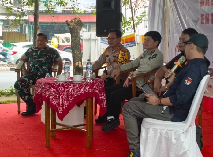 Dalam sambutannya, Kapolsek AKP Sutikno menyampaikan pentingnya kolaborasi antara pemerintah, aparat keamanan, dan masyarakat dalam menciptakan pemilu yang aman dan demokratis.