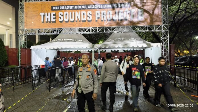 Kapolsek Pademangan, Kompol Immanuel Sinaga, S.H., S.I.K., M.H., yang memimpin langsung pengecekan lokasi, memastikan situasi konser tetap aman dan kondusif. “Kami memantau langsung kondisi di lapangan. Meski hujan deras, kegiatan berjalan lancar dan tertib,” ujarnya di lokasi.