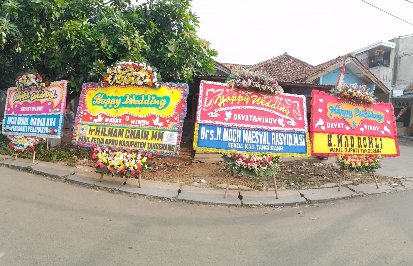 Nampak terlihat sederatan Karangan bunga ucapan dari Bupati Tangerang Zaki Iskandar, Wakil walikota Tangerang ,Wakil Bupati Tangerang, Wakil DPRD Kab.Tangerang, Pemerhati pendidikan dan banyak lainnya menghiasi tempat acara resepsi.