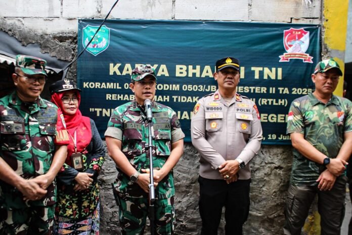 ACTUALNEWS.ID, Kodam Jaya, Jakarta Barat – Dalam upaya membantu mengatasi kesulitan masyarakat, Komandan Kodim 0503/Jakarta Barat, Kolonel Kav Sigit Dharma Wiryawan, S.H., melakukan peninjauan langsung kegiatan Launching Karya Bhakti TNI dalam Program Bedah Rumah Tidak Layak Huni (RTLH) di kediaman Ibu Nurjayanti, yang berlokasi di Jl. Semangka III, Jl. T No.14 RT.002/RW.07, Kelurahan Jatipulo, Kecamatan Palmerah, Jakarta Barat. Jumat (18/7/2025).