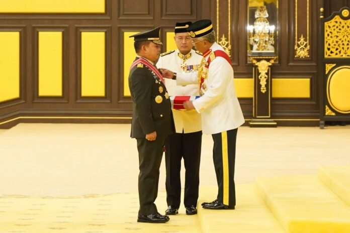 ACTUALNEWS.ID, KUALA LUMPUR, tniad.mil.id – Kepala Staf Angkatan Darat (Kasad) Jenderal TNI Dr. Dudung Abdurachman menerima penganugerahan Darjah Kehormatan Panglima Gagah Angkatan Tentera (PGAT) dari Yang di-Pertuan Agong Kerajaan Malaysia, Al-Sultan Abdullah Ri’ayatuddin Al-Mustafa Billah Shah, bertempat di Balairung Seri Istana Negara, Kuala Lumpur, Malaysia, Selasa (17/10/2023).