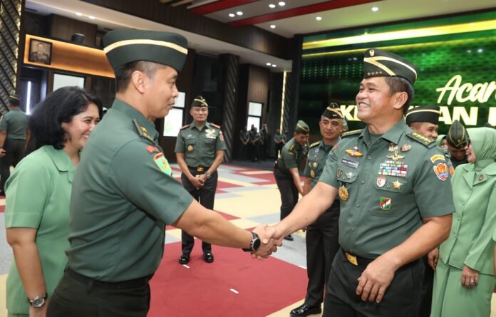 ACTUALNEWS.ID, Jakarta, tniad.mil.id – Kepala Staf Angkatan Darat (Kasad) Jenderal TNI Maruli Simanjuntak. M.Sc., menerima laporan kenaikan pangkat 30 Perwira Tinggi (Pati) TNI AD, di Markas Besar Angkatan Darat (Mabesad), Jakarta, Kamis (4/1/2024). 19 orang diantaranya baru pecah bintang menjadi Brigadir Jenderal.