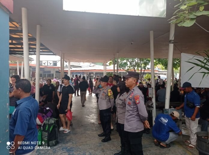 Selain menjaga ketertiban, petugas juga memberikan himbauan kepada penumpang terkait keselamatan di laut dan tetap menjaga keamanan barang pribadi selama perjalanan.