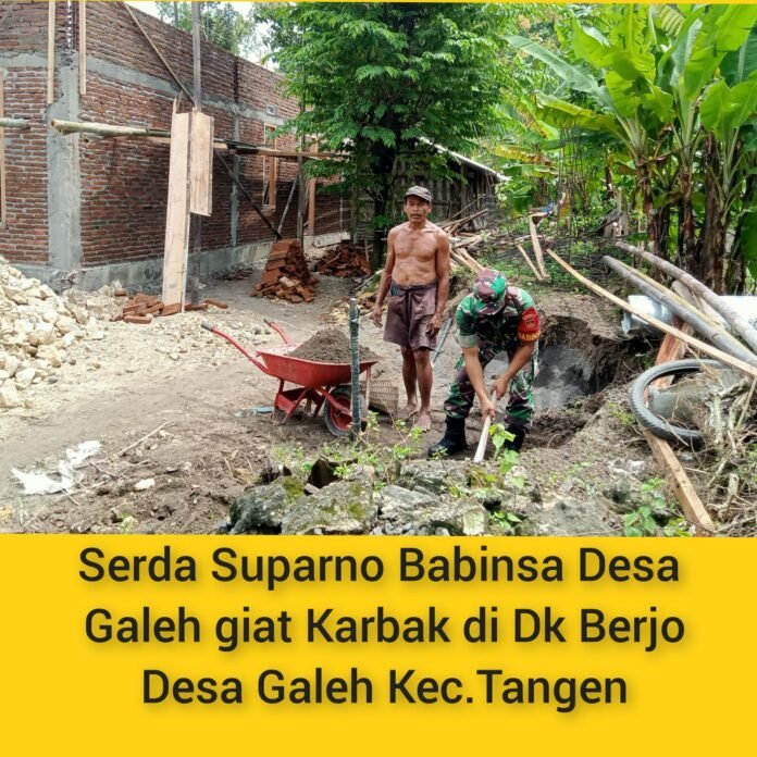 ACTUALNEWS.ID Sragen, Menunjukkan rasa simpatinya terhadap salah satu warga di kampung binaannya yang sedang membangun rumah Serda Suparno Babinsa Ds. Galeh Koramil 10/Tangen Kodim 0725/Sragen melaksanakan karbak di Tempat Bp Sasmo warga Berjo Rt 12 Ds.Galeh Kec. Tangen, Senin ( 27/02/2023 )