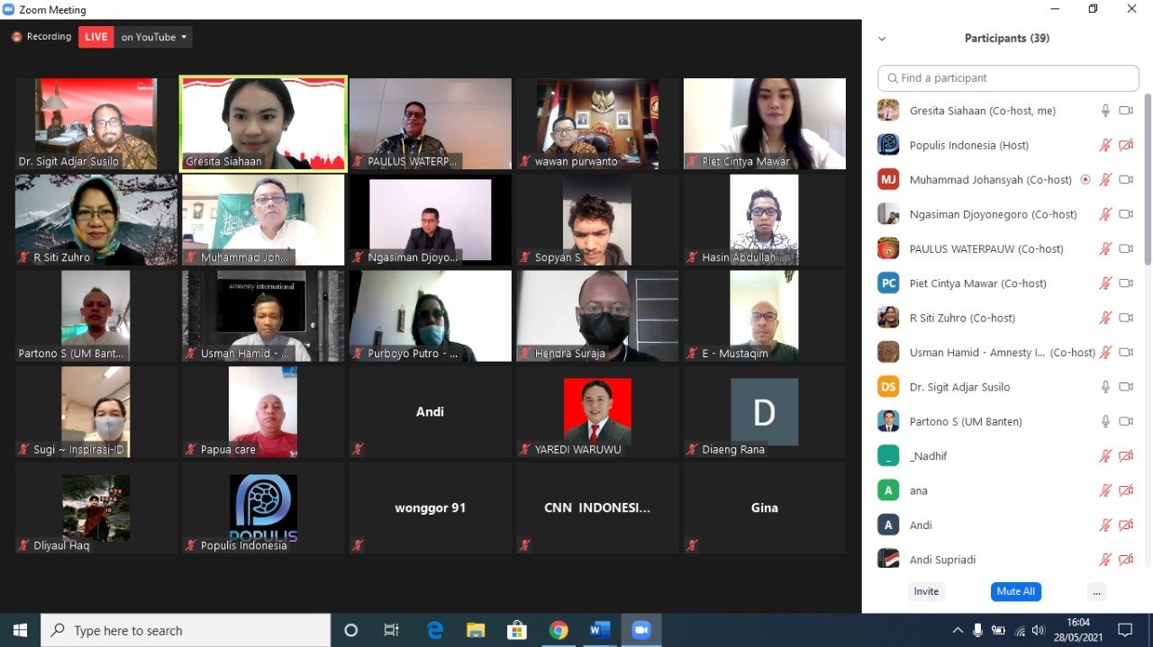 KKB melakukan pengepungan bandara, menembak dan membakar pesawat, membakar sekolah, puskesmas dan rumah warga, menembak warga sipil dan aparat keamanan, dinilai telah memenuhi unsur-unsur UU No. 5 Tahun 2018, ungkap Kabaintelkam Polri Paulus Waterpauw pada acara diskusi nasional yang diselenggarakan oleh Populis Indonesia secara virtual di Jakarta, Jumat (28/05/2021).