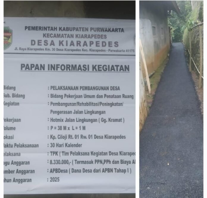 ACTUALNEWS.ID, Purwakarta, Jawa barat | Actuanews.id – Kepala Desa Kiarapedes, Eden Sundana, S.S., menegaskan pentingnya keberadaan dan fungsi jalan lingkungan dalam mendukung kehidupan sehari-hari masyarakat. Jalan lingkungan memiliki peran vital, mulai dari menunjang aktivitas transportasi, memperlancar kegiatan ekonomi, hingga mempererat interaksi sosial warga.Kamis,(17/25).