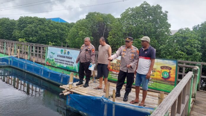 ACTUALNEWS.ID, Jakarta, – Bhabinkamtibmas mendukung Ketahanan Pangan Nasional sesuai Asta Cita Bapak Presiden Prabowo Subiyanto, Aiptu Setiyono selaku Bhabinkamtibmas Muara Angke Polsek Kawasan Sunda Kelapa Polres Pelabuhan Tanjung Priok didampingi Bpk. Ahmad dari Dinas Kelautan dan Perikanan Kota Jakarta Utara serta Kanitbinmas AKP Aji Mulyanto, S.H., bersama-sama melaksanakan kegiatan pendampingan pemberian makanan dan penebaran obat ikan di Kolam Ikan Hutan Mangrove Pelabuhan Muara Angke, Selasa (11/02/2025).