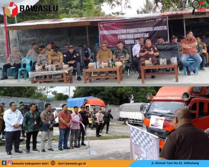 Seremoni pendistribusian logistik Pilkada 2024 dimaksud dipimpin Ketua KPU Dairi, Ariyanto Tinendung didampingi anggota KPU, Asih Firmansyah Solin, Ridwan Hendra Agustinus Samosir, Anggiat Gabe Maruli Tua Sinaga serta Sekretaris KPU, Bisler Padang di Didampingi Ketua Bawaslu Kabupaten Dairi Dan Staf Sekretariat Bawaslu Kabupaten Dairi gudang KPU di jalan Sidikalang-Dolok Sanggul, Simpang Tiga Sitinjo, Senin (25/11/2024).