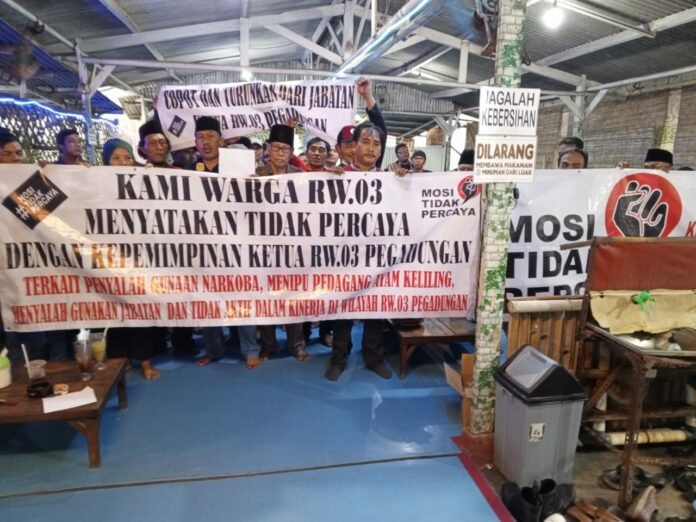 “Kami bersama seluruh warga RW 03 juga mendesak lurah Pegadungan untuk segera mencopot Ketua RW 03,” tegasnya