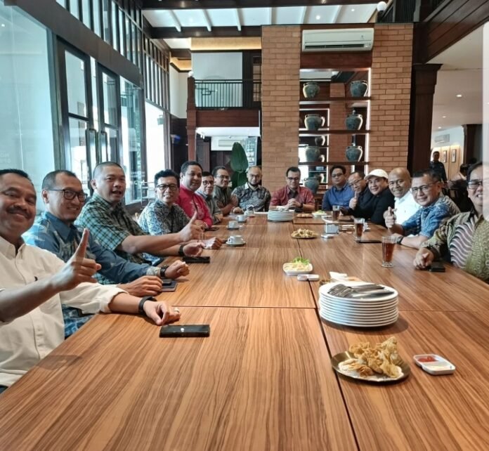 Zulmansyah bersama Atal Sembiring Depari, Ketua Umum PWI Pusat 2018-2023, bendahara umum PWI Pusat Marthen Selamet Susanto, Ketua Dewan Pakar yang juga Ketua Dewan Pengawas TVRI Agus Sudibyo, dan Ketua PWI Jaya Kesit B Handoyo, bertemu Wamen Komdigi Nezar Patria di Restoran Aroem, Jakarta, Jumat (28/11/2024). Pertemuan tersebut juga dihadiri Hendry Ch Bangun dan beberapa Ketua PWI Provinsi.