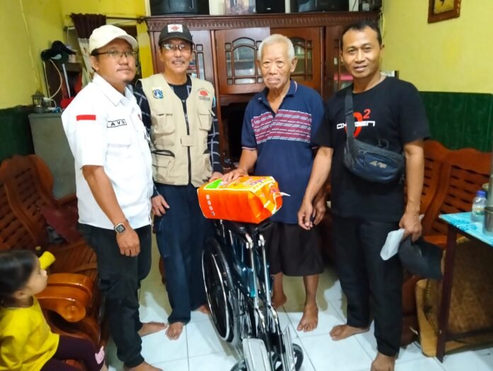 Turun langsung untuk menyerahkan bantuan kursi roda ketua harian PWP Hermawan, humas pujiono dan davip memberikan sentuhan empati yang luar biasa kepada ibu kasinem penderita tumor