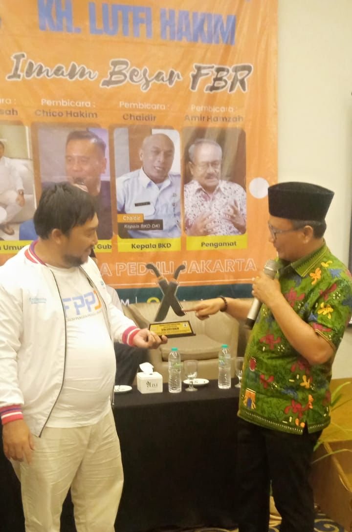 ACTUALNEWS.ID Jakarta,- Ketua Umum Forum Betawi Rempug (FBR), KH Lutfi Hakim, dinilai konsisten dalam melestarikan budaya Betawi dan mendorong pembangunan Jakarta yang berkelanjutan. Atas kiprahnya tersebut, Lutfi menerima penghargaan dari Forum Pemuda Peduli Jakarta (FPPJ).Penghargaan diserahkan dalam diskusi publik bertajuk “Membangun Ekosistem ASN Berkualitas di Pemprov DKI Jakarta”, yang digelar di Hotel Cemara, Jakarta Pusat, Rabu (11/6/2025). Acara ini turut dihadiri oleh pengamat kebijakan publik Amir Hamzah, Kepala BKD DKI Jakarta Chaidir, dan Juru Bicara Gubernur DKI Jakarta Chiko Hakim.Ketua Umum FPPJ, Endriyansah, mengatakan bahwa penghargaan diberikan sebagai bentuk apresiasi atas komitmen Kyai Lutfi menjaga nilai-nilai budaya lokal di tengah dinamika modernisasi ibu kota.“Beliau tidak hanya menjaga warisan budaya Betawi, tetapi juga aktif mendorong Jakarta menjadi kota yang harmonis dan inklusif,” ujar Endriyansah.Selama memimpin FBR, Kyai Lutfi dinilai tak hanya fokus pada aktivitas kultural, tetapi juga membangun komunikasi lintas kelompok masyarakat, termasuk kalangan pemuda. Ia dikenal terbuka terhadap berbagai isu strategis yang menyangkut pembangunan Jakarta.“Pandangan beliau kerap menjadi penyeimbang antara kearifan lokal dan kebutuhan Jakarta sebagai kota global,” tambah Endriyansah.Beberapa tahun terakhir, Kyai Lutfi aktif menggagas ruang-ruang dialog antara pemerintah, masyarakat adat, dan generasi muda. Salah satunya adalah perannya sebagai penasihat Kaukus Muda Betawi, yang mengusung komitmen pelestarian budaya serta penguatan peran masyarakat dalam pembangunan, termasuk dalam proses penyusunan Undang-Undang Daerah Khusus Jakarta (DKJ).Kyai Lutfi juga tercatat sebagai tokoh yang turut mendorong lahirnya Peraturan Daerah tentang Lembaga Adat dan Kebudayaan Betawi. Aturan tersebut memberi dasar hukum bagi pelestarian identitas budaya Betawi di Jakarta.Di kalangan pemuda lintas organisasi, Kyai Lutfi dikenal sebagai sosok rendah hati, ramah, inklusif, dan terbuka.“Beliau tidak eksklusif hanya kepada komunitas Betawi. Banyak aktivis muda dari berbagai latar belakang merasa diterima dan dilibatkan dalam forum-forum yang beliau inisiasi,” ujar Ketua Umum Barisan Jakarta (BAJA), Lintang Fishutama, yang turut hadir dalam diskusi.FPPJ berharap penghargaan ini dapat mendorong lebih banyak tokoh lokal untuk terlibat aktif dalam memperkuat identitas kota, sekaligus menjaga arah pembangunan Jakarta agar tetap ramah budaya dan berkelanjutan.***
