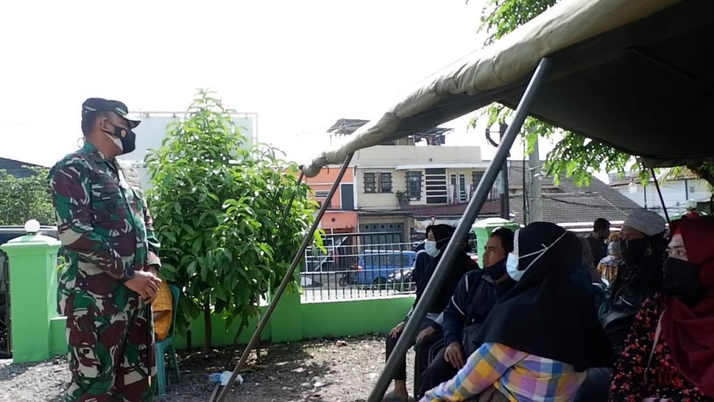 ActualNews CIANJUR – Ratusan warga Cianjur dengan antusias menjalani vaksinasi COVID-19, di Pos Kesehatan 03.10.08 Kodim 0608/Cianjur, Asten, Cianjur, Jumat (25/6/2021). Penyuntikan vaksin tersebut dilakukan untuk mendukung program “Serbuan Vaksin Nasional”.