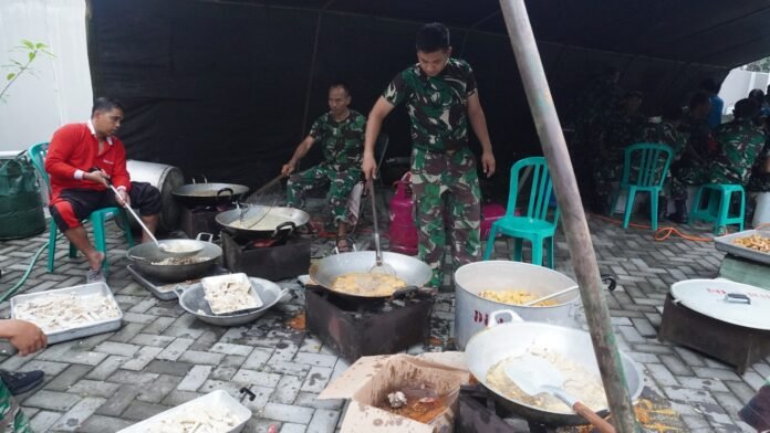 ACTUALNEWS.ID Sukoharjo-Sebagai bentuk kepedulian atas dampak bencana banjir di wilayah Kab. Sukoharjo, Kodim 0726/Sukoharjo mendirikan dapur lapangan yang bertempat di Koramil 09/Grogol, Sabtu (18/2/2023).