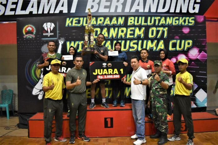 Kejuaraan bulutangkis Danrem 071/Wijayakusuma Cup dalam rangka menyemarakkan Hari Jadi Korem 071/Wijayakusuma ke-62 Tahun 2023. Diikuti 11 tim dari Makorem 071/Wijayakusuma dan perwakilan 9 Kodim jajaran Korem 071/Wijayakusuma.