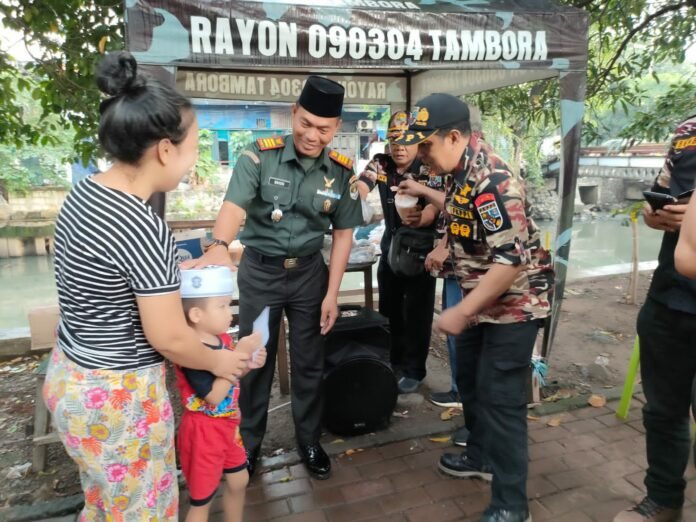 ACTUALNEWS.ID, Kodam Jaya, Jakarta – Koramil 02/Tb dipimpin langsung Danramil Kapten CHB Wahidin bersama dengan FKPPI mengadakan giat pembagian takjil dan santunan anak yatim piatu bertempat di Jalan Angke Jaya Raya RT 005 RW 06 Kelurahan Angke Kecamatan Tambora ( Taman Angke Jaya ) Jakarta barat. Kamis, 30/3/23.