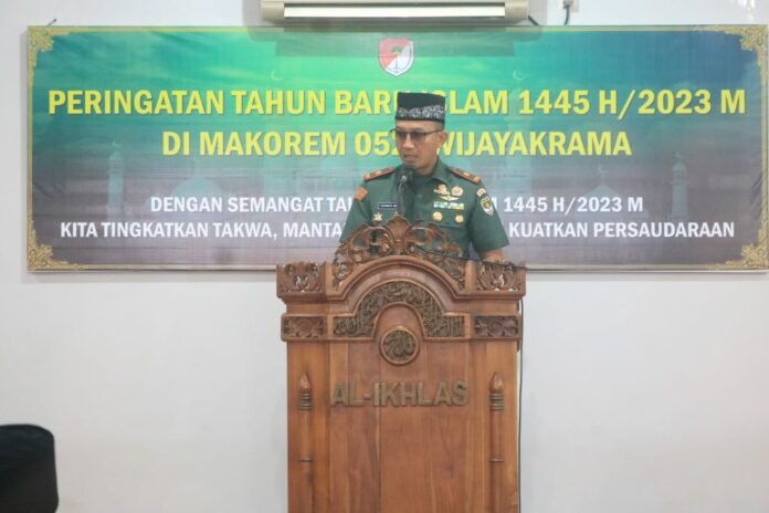 ACTUALNEWS.ID Tangerang -Mengambil tema” Dengan semangat tahun baru Islam 1445 H/2023 M kita tingkatkan takwa, mantapkan akhlak mulia dan kuatkan persaudaraan” Korem 052/Wkr , mengadakan peringatan Tahun Baru Islam yang di selenggarakan di Masjid Al Ikhlas Makorem Jln Beulevard Diponegoro no 108, Bencongan, Kelapa Dua Kabupaten Tangerang.Rabu (26/07/2023)