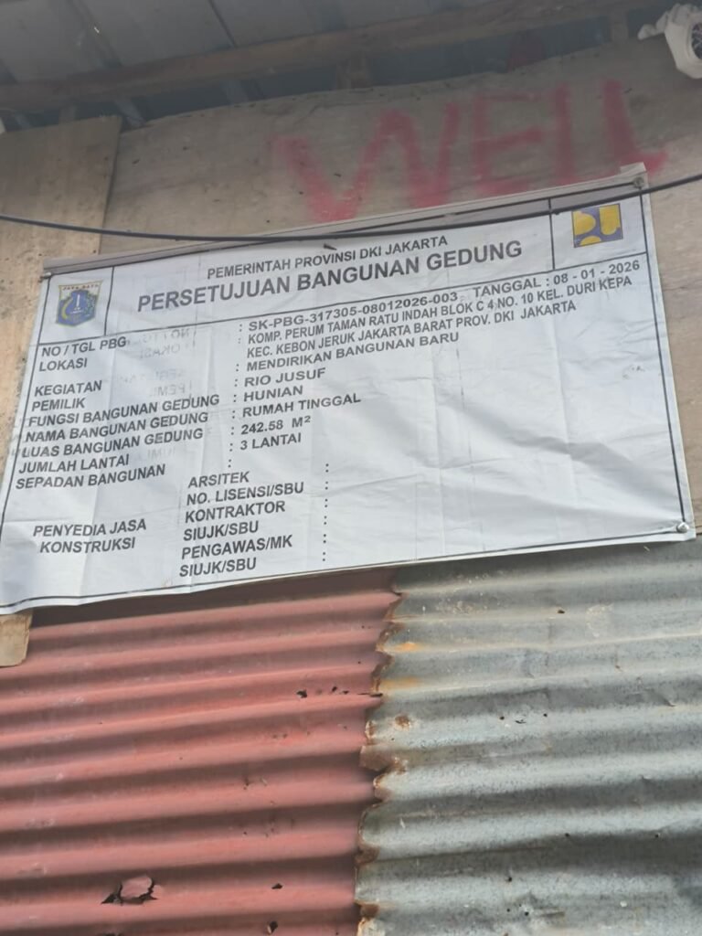 JAKARTA,AN.ID – Maraknya beredar plang izin PBG (Persetujuan Bangunan Gedung) yang di duga palsu jakarta barat sangat mencoreng institusi CKTRP (Cipta Karya Tata Ruang dan Pertanahan).