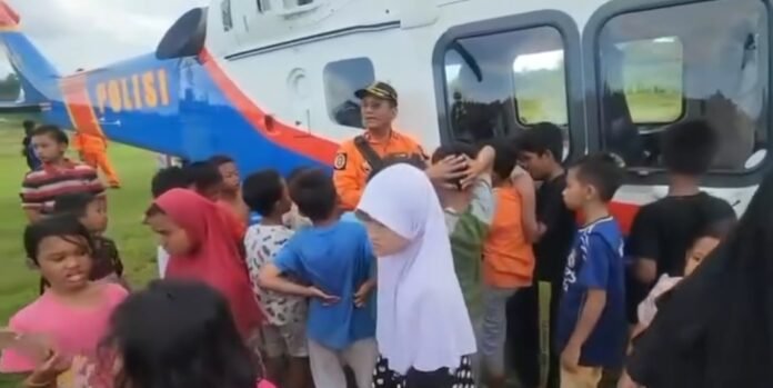 Kru Helikopter Polri Dampingi Warga di Tengah Bencana, Anak-Anak Aceh Tamiang Jadi Sumber Semangat