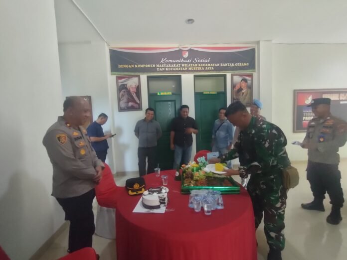 Dalam kesempatan penuh keakraban tersebut, Kapolsek Bantar Gebang Kompol Sukadi, SH., MM menyampaikan ucapan selamat Hari Ulang Tahun TNI ke-80 dengan tema: