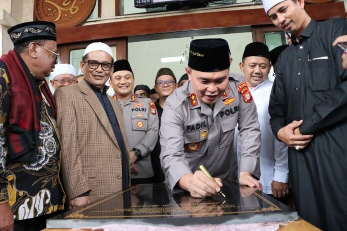 Selain melakukan silaturahmi pada kesempatan ini pula kapolda metro jaya Irjen Pol Dr M Fadil Imran menuliskan pesan dan menandatangani prasasti