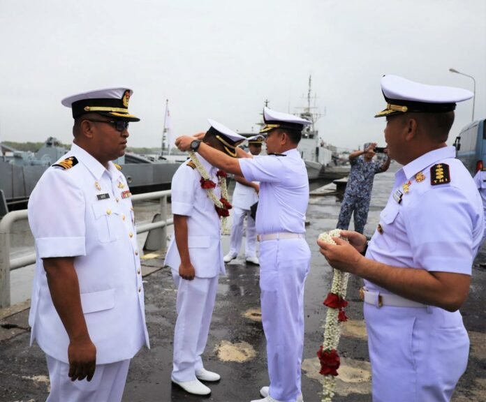 ACTUALNEWS.ID TNI AL, Belawan,- Komandan Lantamal I Laksamana Pertama TNI Johanes Djanarko Wibowo, yang diwakili oleh Komandan Satuan Patroli Lantamal I Kolonel Laut (P) Sarkolim, S.T., M.Tr.Hanla., M.M., didampingi oleh Asops Danguskamla Koarmada I Kolonel Laut (P) Tonny Sundah menyambut kedatangan 2 (dua) Kapal Perang Malaysia KD BADIK dan KD Mahamiru yang sandar di Dermaga Lantamal I, Jalan Serma Hanafiah No. 1 Belawan, Medan, Sumatera Utara, Rabu (01/03/2023).